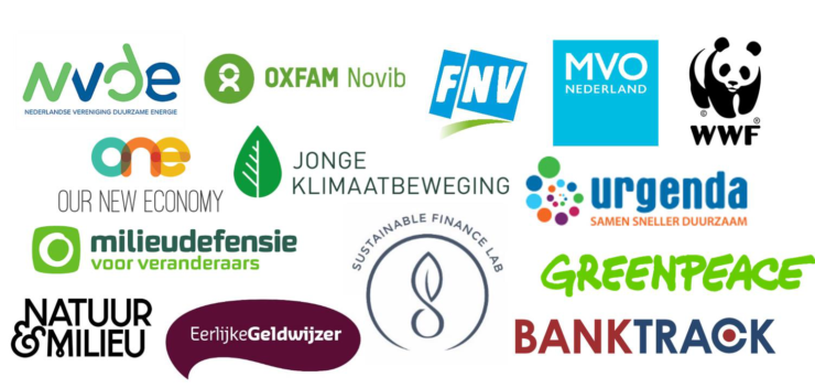 Naast het Sustainable Finance Lab is de brief ondertekend door 13 maatschappelijke organisaties waaronder vakbond FNV, MVO Nederland, Nederlandse Vereniging Duurzame Energie (NVDE), Eerlijke Geldwijzer, Banktrack, Our New Economy (ONE), Urgenda, ontwikkelingsorganisatie OxfamNovib en milieuorganisaties Greenpeace, Milieudefensie, het Wereld Natuurfonds (WWF) en de Jonge Klimaatbeweging.