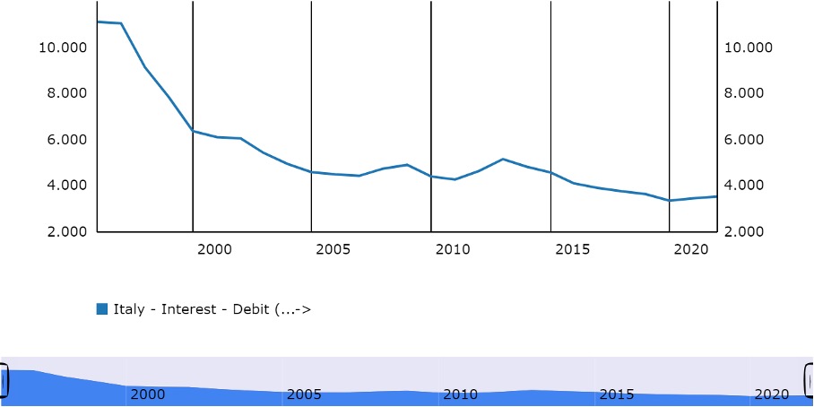 The figure below shows Italian government interest expenditure as % of GDP (picture from ECB extracted 25-9-2022):